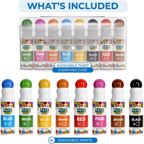 - 🎨 NO MESS, NO STRESS - With a rainbow of nontoxic, water-based washable paints like ours, you won't have to worry about your little painters leaving a permanent personal touch behind on furniture, carpet, walls, or faces.