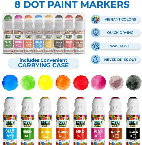 - 🎨 SUPPLIES INCLUDED: 8 leak-proof dot to dot marker pens designed to never dry out, plus a carrying case - ideal for kids age 3-8 years.